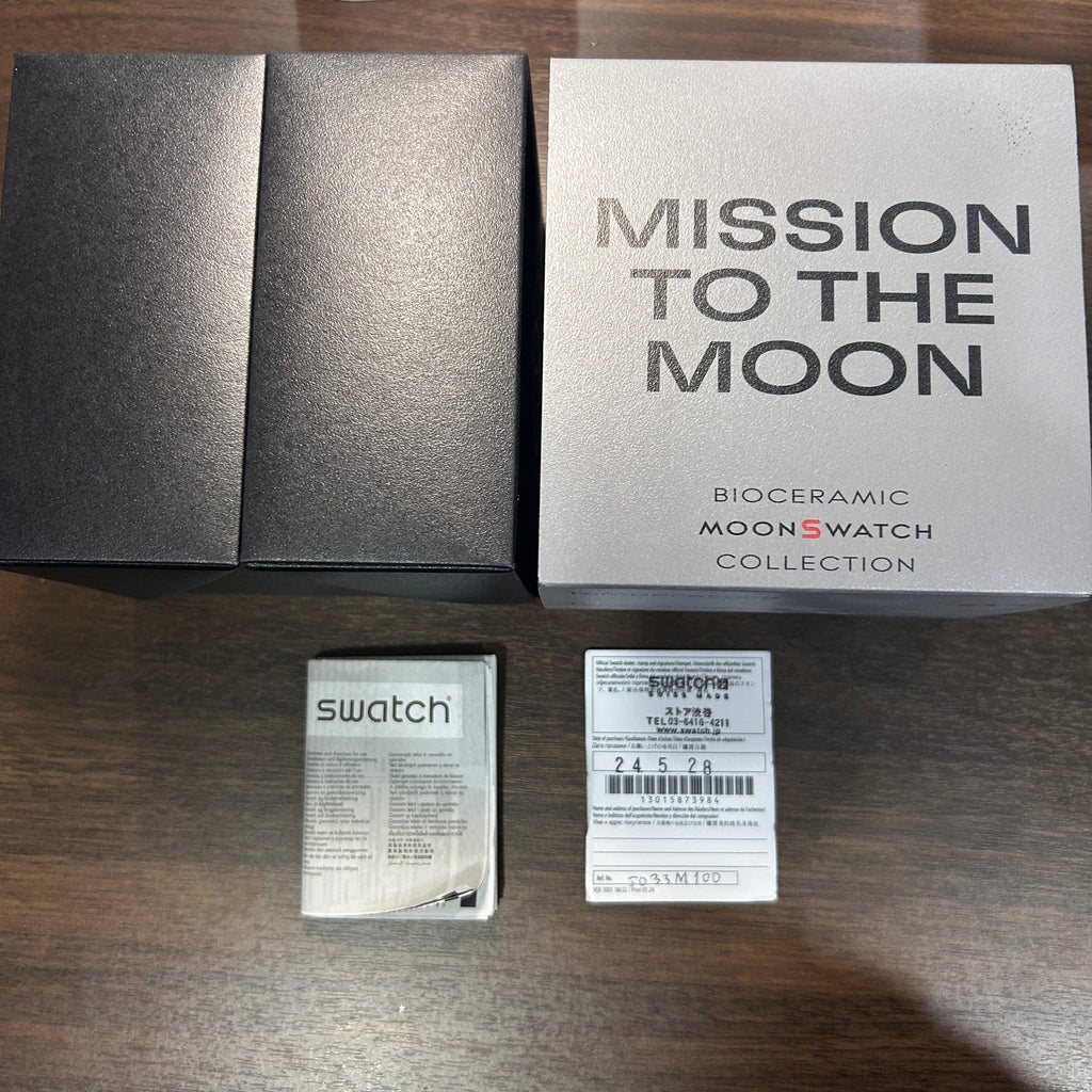 Full set (Watch, box, manual, warranty paper, Moonswatch booklet)